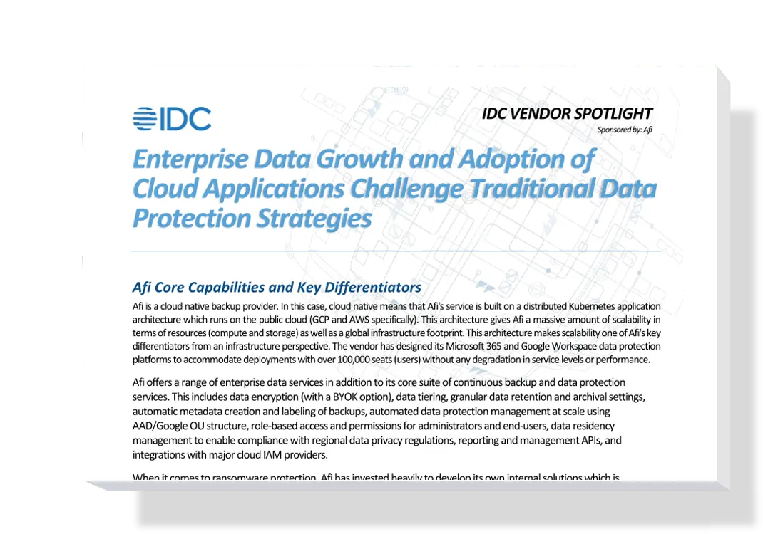 Afi backs up the workloads that no other backup provider supports, including Microsoft Teams and the new Google Sites.