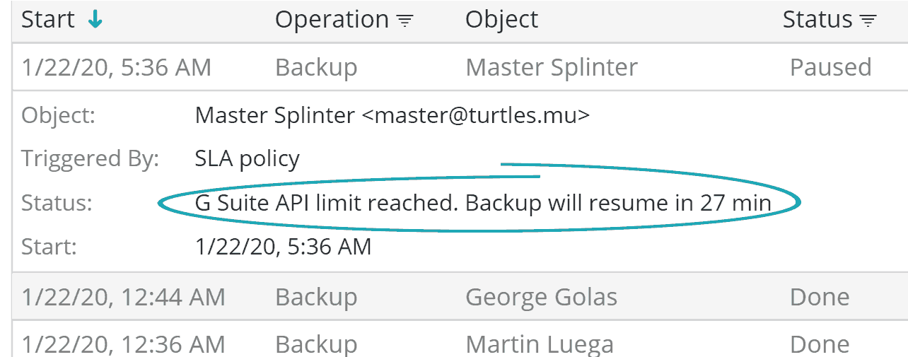 Afi is based on a new distributed microservices architecture that helps achieve 2-3x faster performance than legacy solutions. The difference in performance is especially significant when protecting large resources (Gmail and Drives with millions of items and 10s of terabytes of data).